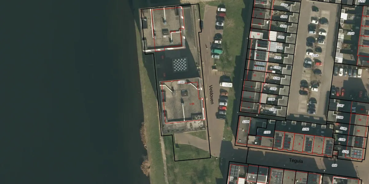 Het perceel waarop Veldoven 17 staat heeft een oppervlakte van 2182 m². Dit is een zeer groot perceel. De perceeloppervlakte wordt geregistreerd door het Kadaster. Gedetailleerde informatie over de maten van dit perceel kunt u vinden in het rapport Kadastrale kaart met maatvoering van Veldoven 17.