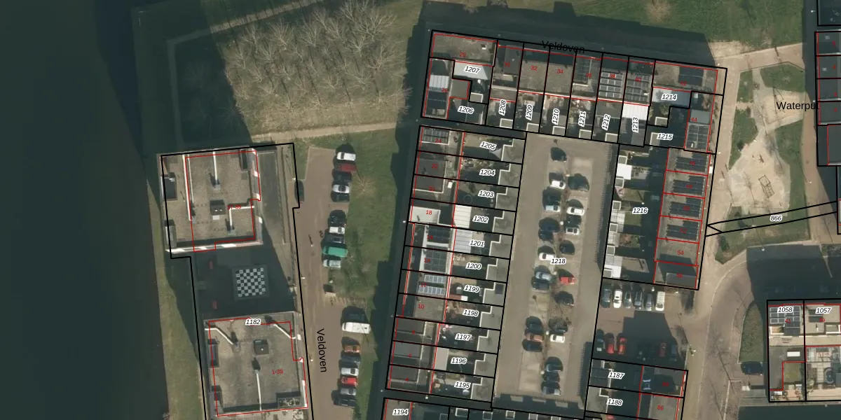 Veldoven 18 is gelegen op kadastraal perceel CUI00G1202. Deze kadastrale aanduiding is uniek en wordt gebruikt door het Kadaster om eigendomsrechten en andere zakelijke rechten vast te leggen. Het perceel maakt onderdeel uit van de kadastrale gemeente Cuijk.