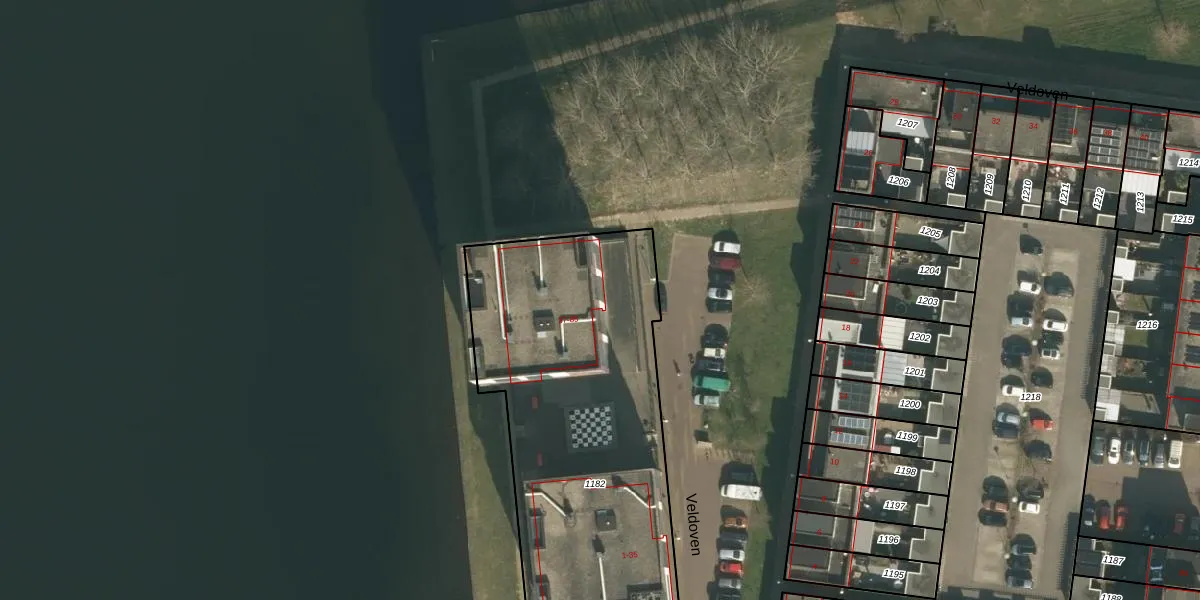 Veldoven 37 is gelegen op kadastraal perceel CUI00G1182. Deze kadastrale aanduiding is uniek en wordt gebruikt door het Kadaster om eigendomsrechten en andere zakelijke rechten vast te leggen. Het perceel maakt onderdeel uit van de kadastrale gemeente Cuijk.