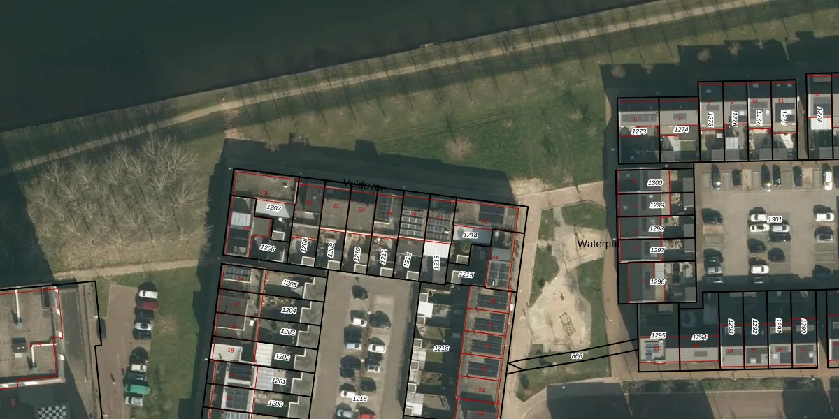 Veldoven 38 is gelegen op kadastraal perceel CUI00G1212. Deze kadastrale aanduiding is uniek en wordt gebruikt door het Kadaster om eigendomsrechten en andere zakelijke rechten vast te leggen. Het perceel maakt onderdeel uit van de kadastrale gemeente Cuijk.