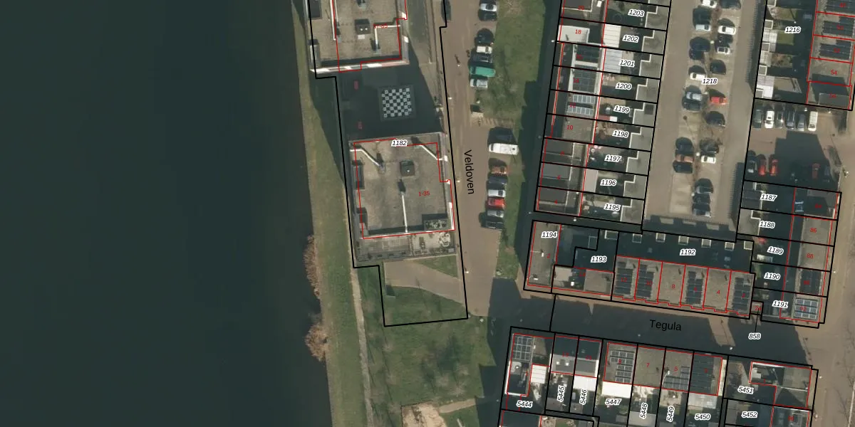 Het perceel waarop Veldoven 7 staat heeft een oppervlakte van 2182 m². Dit is een zeer groot perceel. De perceeloppervlakte wordt geregistreerd door het Kadaster. Gedetailleerde informatie over de maten van dit perceel kunt u vinden in het rapport Kadastrale kaart met maatvoering van Veldoven 7.