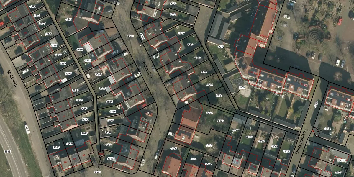 Gebruik de zoekbalk of klik op een perceel voor informatie over de adressen binnen dit perceel.