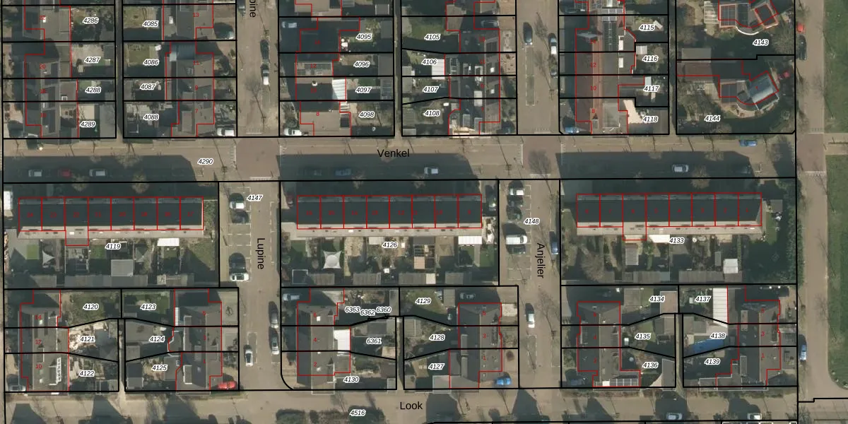 Het perceel waarop Venkel 11 staat heeft een oppervlakte van 1294 m². Dit is een zeer groot perceel. De perceeloppervlakte wordt geregistreerd door het Kadaster. Gedetailleerde informatie over de maten van dit perceel kunt u vinden in het rapport Kadastrale kaart met maatvoering van Venkel 11.