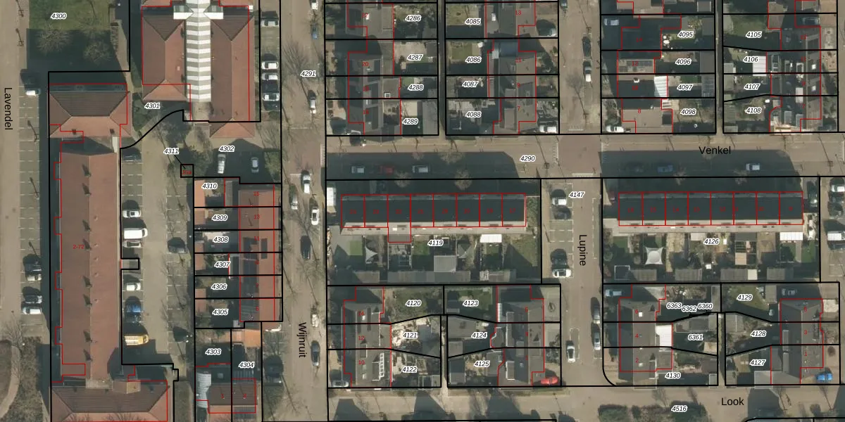 Het perceel waarop Venkel 21 staat heeft een oppervlakte van 1275 m². Dit is een zeer groot perceel. De perceeloppervlakte wordt geregistreerd door het Kadaster. Gedetailleerde informatie over de maten van dit perceel kunt u vinden in het rapport Kadastrale kaart met maatvoering van Venkel 21.