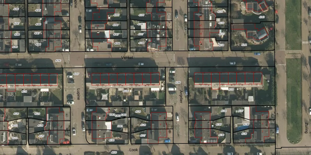 Het perceel waarop Venkel 9 staat heeft een oppervlakte van 1294 m². Dit is een zeer groot perceel. De perceeloppervlakte wordt geregistreerd door het Kadaster. Gedetailleerde informatie over de maten van dit perceel kunt u vinden in het rapport Kadastrale kaart met maatvoering van Venkel 9.