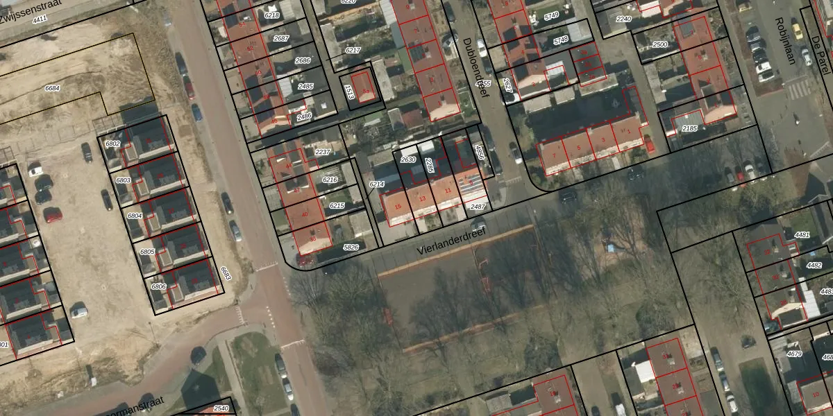 Gebruik de zoekbalk of klik op een perceel voor informatie over de adressen binnen dit perceel.