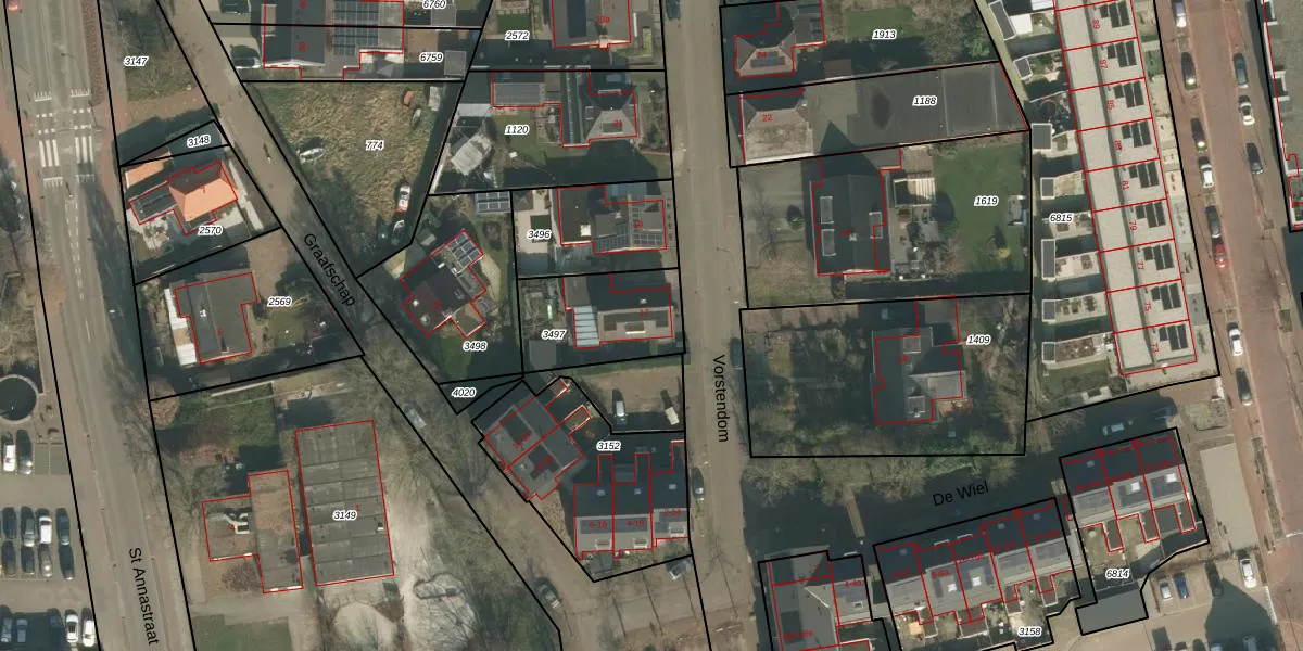 Gebruik de zoekbalk of klik op een perceel voor informatie over de adressen binnen dit perceel.