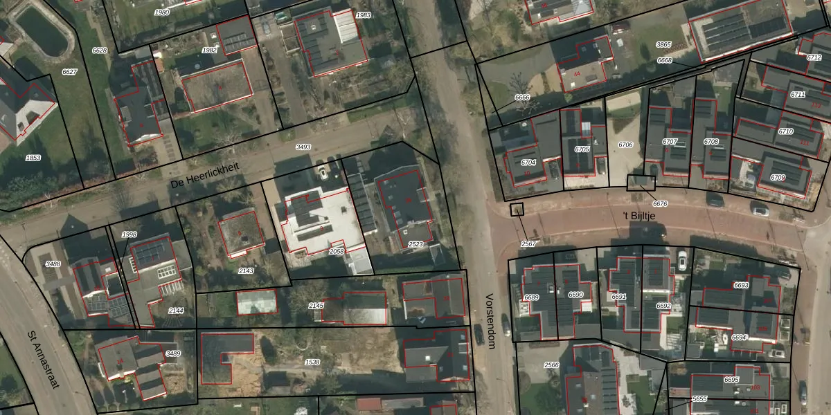 Gebruik de zoekbalk of klik op een perceel voor informatie over de adressen binnen dit perceel.