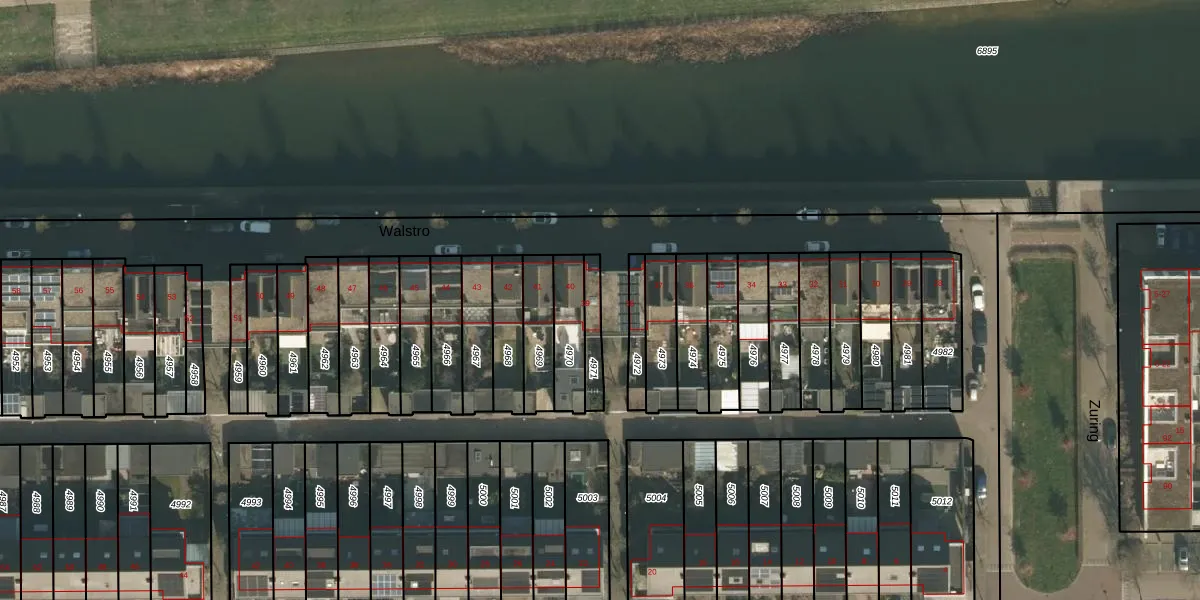 Het perceel waarop Walstro 39 staat heeft een oppervlakte van 74 m². Dit is een klein perceel. De perceeloppervlakte wordt geregistreerd door het Kadaster. Gedetailleerde informatie over de maten van dit perceel kunt u vinden in het rapport Kadastrale kaart met maatvoering van Walstro 39.