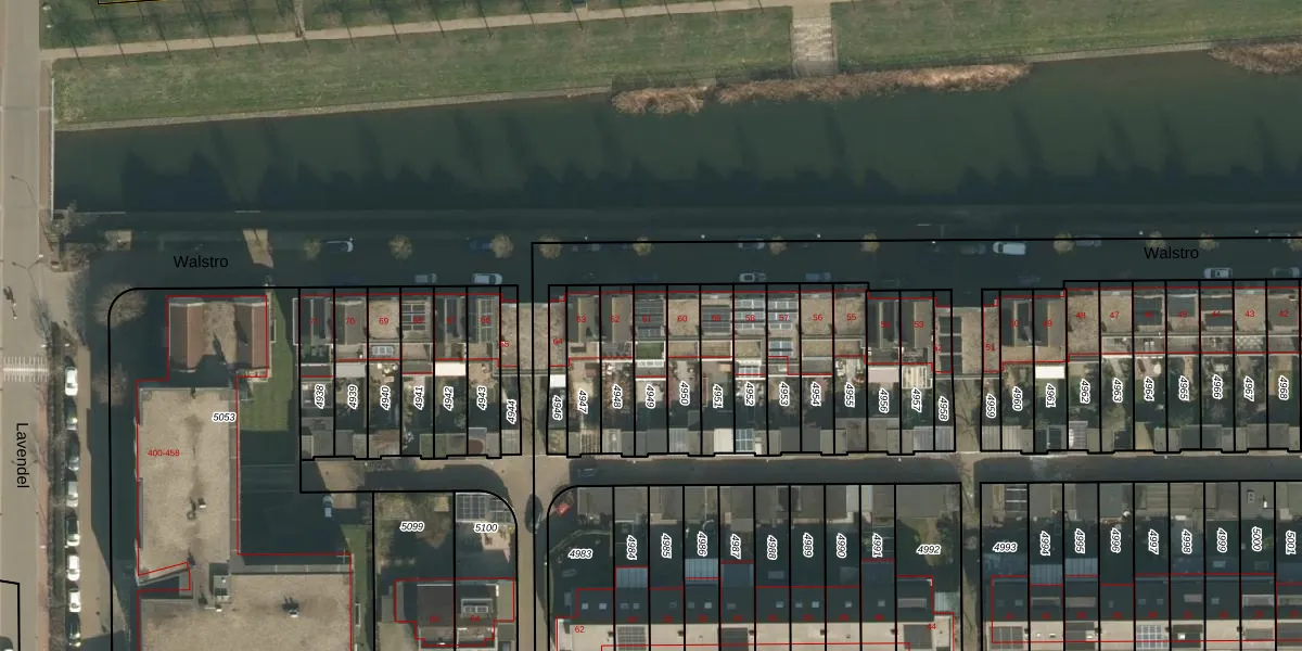 Het perceel waarop Walstro 61 staat heeft een oppervlakte van 135 m². Dit is een middelgroot perceel. De perceeloppervlakte wordt geregistreerd door het Kadaster. Gedetailleerde informatie over de maten van dit perceel kunt u vinden in het rapport Kadastrale kaart met maatvoering van Walstro 61.