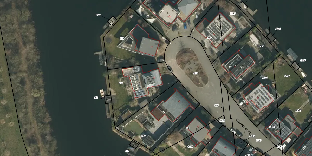 Het perceel waarop Waterkering 13 staat heeft een oppervlakte van 1075 m². Dit is een zeer groot perceel. De perceeloppervlakte wordt geregistreerd door het Kadaster. Gedetailleerde informatie over de maten van dit perceel kunt u vinden in het rapport Kadastrale kaart met maatvoering van Waterkering 13.