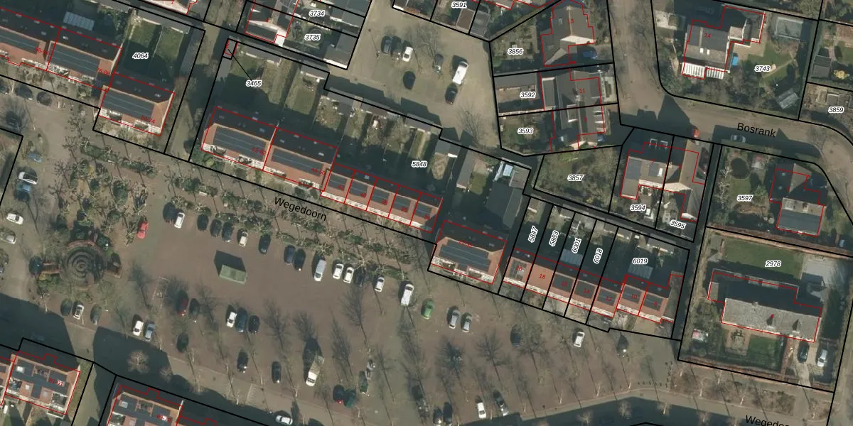 Het perceel waarop Wegedoorn 34 staat heeft een oppervlakte van 2199 m². Dit is een zeer groot perceel. De perceeloppervlakte wordt geregistreerd door het Kadaster. Gedetailleerde informatie over de maten van dit perceel kunt u vinden in het rapport Kadastrale kaart met maatvoering van Wegedoorn 34.