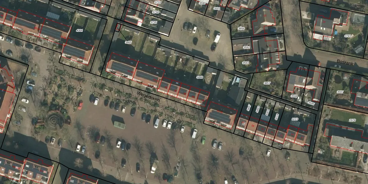 Het perceel waarop Wegedoorn 38 staat heeft een oppervlakte van 2199 m². Dit is een zeer groot perceel. De perceeloppervlakte wordt geregistreerd door het Kadaster. Gedetailleerde informatie over de maten van dit perceel kunt u vinden in het rapport Kadastrale kaart met maatvoering van Wegedoorn 38.