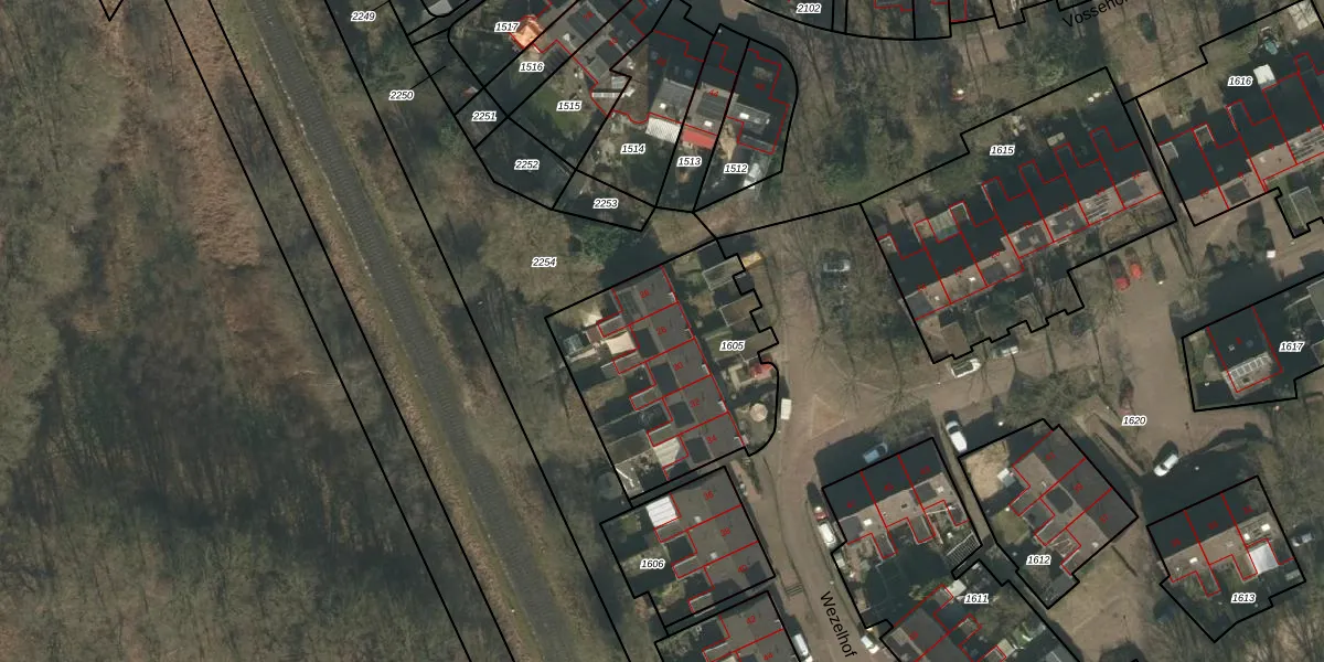 Het perceel waarop Wezelhof 28 staat heeft een oppervlakte van 856 m². Dit is een groot perceel. De perceeloppervlakte wordt geregistreerd door het Kadaster. Gedetailleerde informatie over de maten van dit perceel kunt u vinden in het rapport Kadastrale kaart met maatvoering van Wezelhof 28.