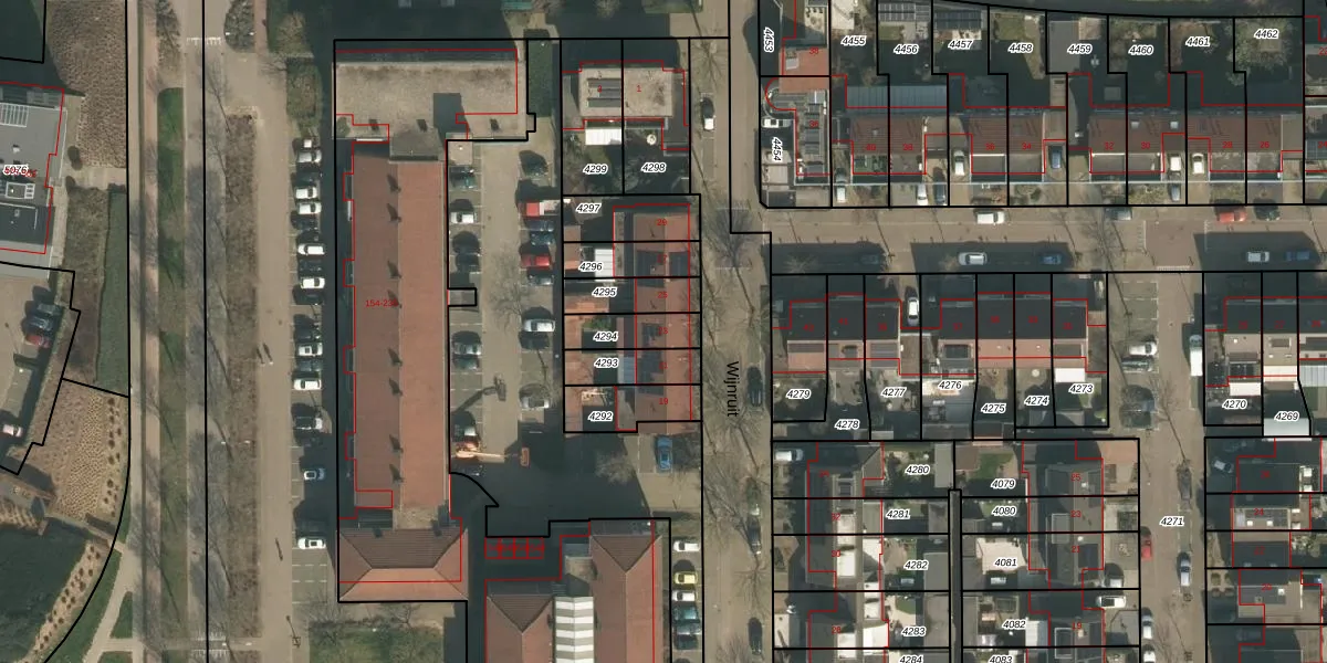 Het perceel waarop Wijnruit 23 staat heeft een oppervlakte van 112 m². Dit is een middelgroot perceel. De perceeloppervlakte wordt geregistreerd door het Kadaster. Gedetailleerde informatie over de maten van dit perceel kunt u vinden in het rapport Kadastrale kaart met maatvoering van Wijnruit 23.