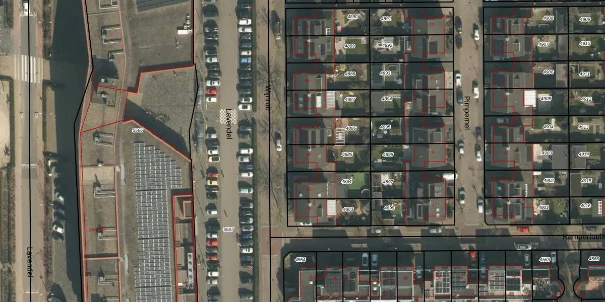 Het perceel waarop Wijnruit 48 staat heeft een oppervlakte van 249 m². Dit is een middelgroot perceel. De perceeloppervlakte wordt geregistreerd door het Kadaster. Gedetailleerde informatie over de maten van dit perceel kunt u vinden in het rapport Kadastrale kaart met maatvoering van Wijnruit 48.