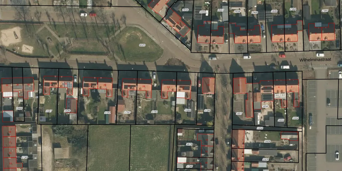 Het perceel waarop Wilhelminastraat 14 staat heeft een oppervlakte van 722 m². Dit is een groot perceel. De perceeloppervlakte wordt geregistreerd door het Kadaster. Gedetailleerde informatie over de maten van dit perceel kunt u vinden in het rapport Kadastrale kaart met maatvoering van Wilhelminastraat 14.
