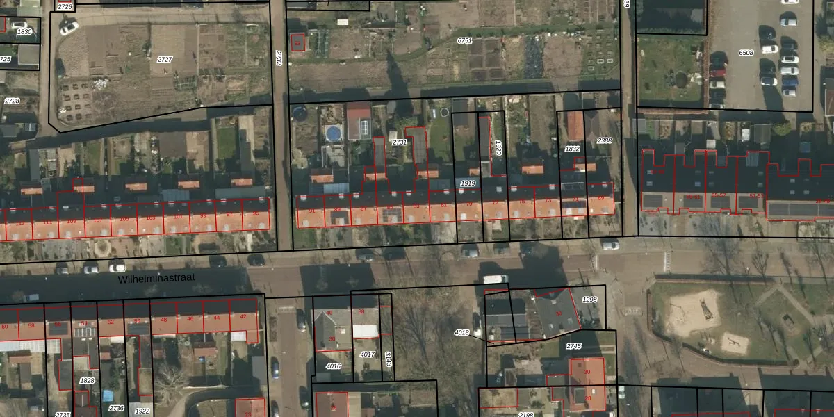 Het perceel waarop Wilhelminastraat 83 staat heeft een oppervlakte van 1935 m². Dit is een zeer groot perceel. De perceeloppervlakte wordt geregistreerd door het Kadaster. Gedetailleerde informatie over de maten van dit perceel kunt u vinden in het rapport Kadastrale kaart met maatvoering van Wilhelminastraat 83.
