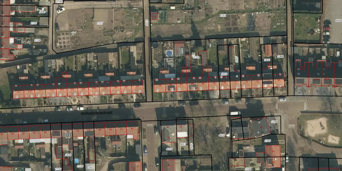 Het perceel waarop Wilhelminastraat 89 staat heeft een oppervlakte van 1935 m². Dit is een zeer groot perceel. De perceeloppervlakte wordt geregistreerd door het Kadaster. Gedetailleerde informatie over de maten van dit perceel kunt u vinden in het rapport Kadastrale kaart met maatvoering van Wilhelminastraat 89.