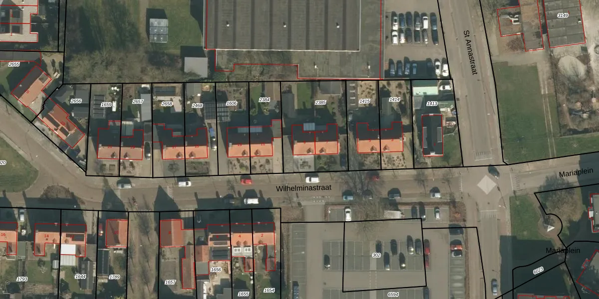 Het perceel waarop Wilhelminastraat 9 staat heeft een oppervlakte van 664 m². Dit is een groot perceel. De perceeloppervlakte wordt geregistreerd door het Kadaster. Gedetailleerde informatie over de maten van dit perceel kunt u vinden in het rapport Kadastrale kaart met maatvoering van Wilhelminastraat 9.