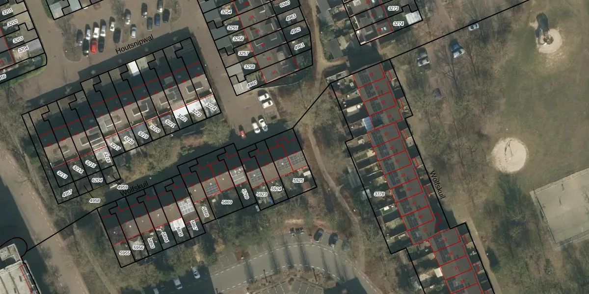 Het perceel waarop Wolfskuil 27 staat heeft een oppervlakte van 226 m². Dit is een middelgroot perceel. De perceeloppervlakte wordt geregistreerd door het Kadaster. Gedetailleerde informatie over de maten van dit perceel kunt u vinden in het rapport Kadastrale kaart met maatvoering van Wolfskuil 27.