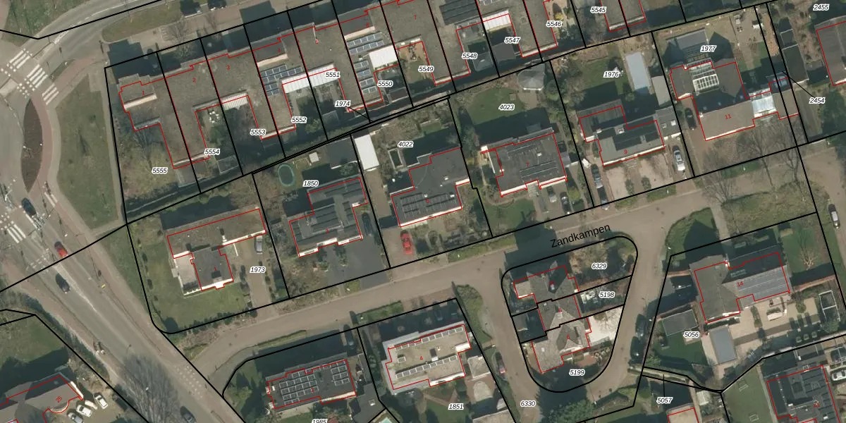 Zandkampen 5 is gelegen op kadastraal perceel CUI00A4022. Deze kadastrale aanduiding is uniek en wordt gebruikt door het Kadaster om eigendomsrechten en andere zakelijke rechten vast te leggen. Het perceel maakt onderdeel uit van de kadastrale gemeente Cuijk.