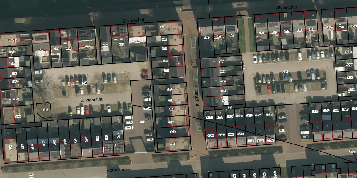 Zilverschat 13 is gelegen op kadastraal perceel CUI00F820. Deze kadastrale aanduiding is uniek en wordt gebruikt door het Kadaster om eigendomsrechten en andere zakelijke rechten vast te leggen. Het perceel maakt onderdeel uit van de kadastrale gemeente Cuijk.