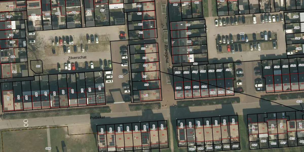 Het perceel waarop Zilverschat 7 staat heeft een oppervlakte van 112 m². Dit is een middelgroot perceel. De perceeloppervlakte wordt geregistreerd door het Kadaster. Gedetailleerde informatie over de maten van dit perceel kunt u vinden in het rapport Kadastrale kaart met maatvoering van Zilverschat 7.