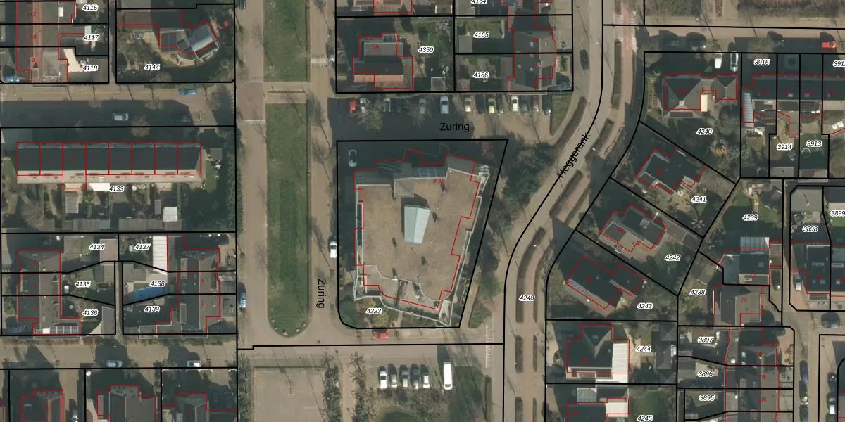 Het perceel waarop Zuring 52 staat heeft een oppervlakte van 1526 m². Dit is een zeer groot perceel. De perceeloppervlakte wordt geregistreerd door het Kadaster. Gedetailleerde informatie over de maten van dit perceel kunt u vinden in het rapport Kadastrale kaart met maatvoering van Zuring 52.
