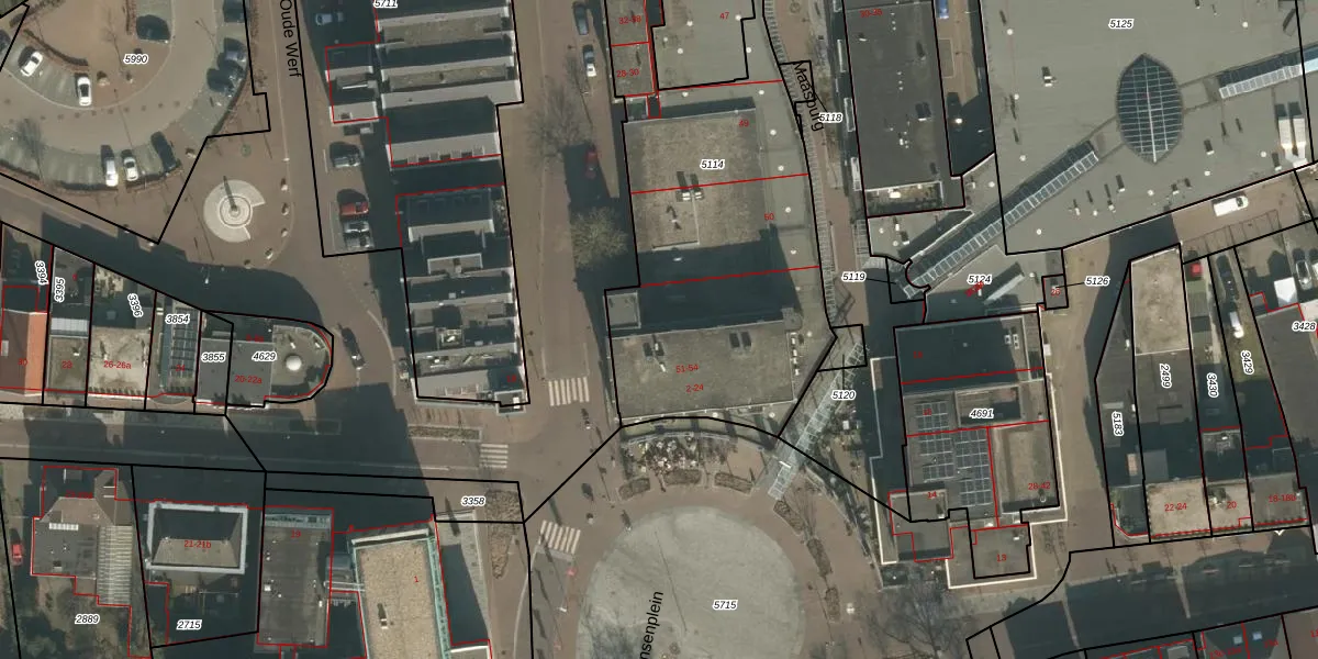 Het perceel waarop het adres ligt is CUI00-C-5114. De afkorting 'CUI00' staat voor kadastrale gemeente Cuijk. De gemiddelde perceelgrootte in Cuijk is 3860,42 m². Dit perceel is kleiner: de perceeloppervlakte bedraagt 2010 m². Het kleinste perceel in de kadastrale gemeente is 0 m² groot. De grootste perceeloppervlakte is 72,5 ha. Op het perceel zijn 26 adressen aanwezig. De laatste wijziging in het de Basisregistratie Kadaster (BRK) was op 21-07-2010.