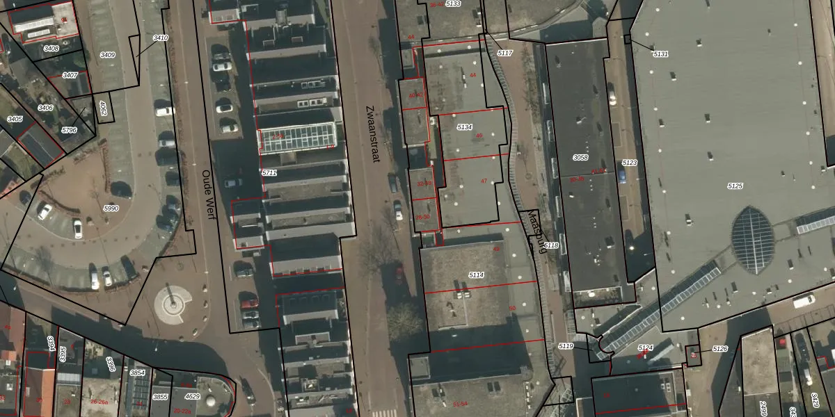 Zwaanstraat 28 is gelegen op kadastraal perceel CUI00C5114. Deze kadastrale aanduiding is uniek en wordt gebruikt door het Kadaster om eigendomsrechten en andere zakelijke rechten vast te leggen. Het perceel maakt onderdeel uit van de kadastrale gemeente Cuijk.