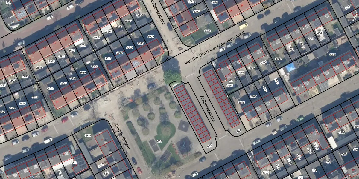Het perceel waarop Aalbersestraat 1 staat heeft een oppervlakte van 412 m². Dit is een groot perceel. De perceeloppervlakte wordt geregistreerd door het Kadaster. Gedetailleerde informatie over de maten van dit perceel kunt u vinden in het rapport Kadastrale kaart met maatvoering van Aalbersestraat 1.