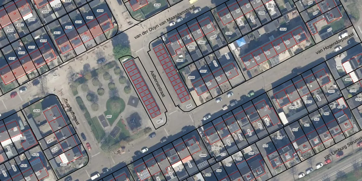 Het perceel waarop Aalbersestraat 32 staat heeft een oppervlakte van 433 m². Dit is een groot perceel. De perceeloppervlakte wordt geregistreerd door het Kadaster. Gedetailleerde informatie over de maten van dit perceel kunt u vinden in het rapport Kadastrale kaart met maatvoering van Aalbersestraat 32.