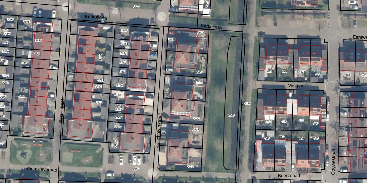 Het perceel waarop Aalscholverstraat 13 staat heeft een oppervlakte van 296 m². Dit is een middelgroot perceel. De perceeloppervlakte wordt geregistreerd door het Kadaster. Gedetailleerde informatie over de maten van dit perceel kunt u vinden in het rapport Kadastrale kaart met maatvoering van Aalscholverstraat 13.