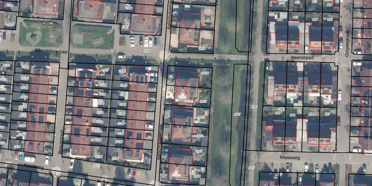 Aalscholverstraat 23 is gelegen op kadastraal perceel CLB00N2013. Deze kadastrale aanduiding is uniek en wordt gebruikt door het Kadaster om eigendomsrechten en andere zakelijke rechten vast te leggen. Het perceel maakt onderdeel uit van de kadastrale gemeente Culemborg.