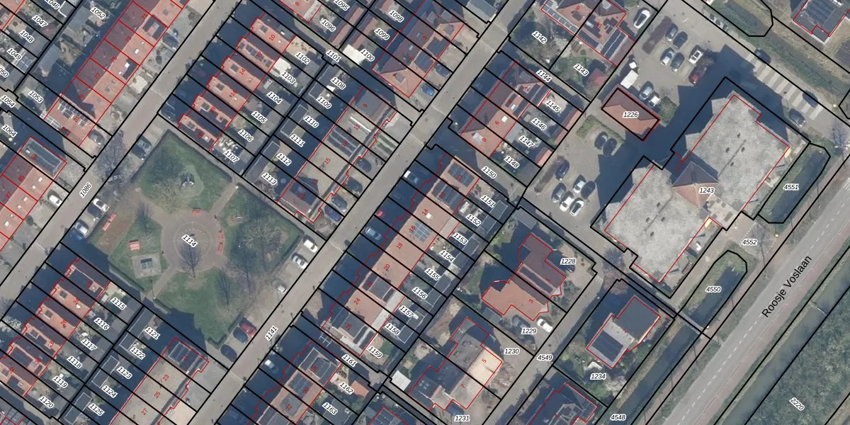 Gebruik de zoekbalk of klik op een perceel voor informatie over de adressen binnen dit perceel.