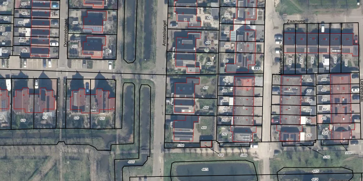 Gebruik de zoekbalk of klik op een perceel voor informatie over de adressen binnen dit perceel.