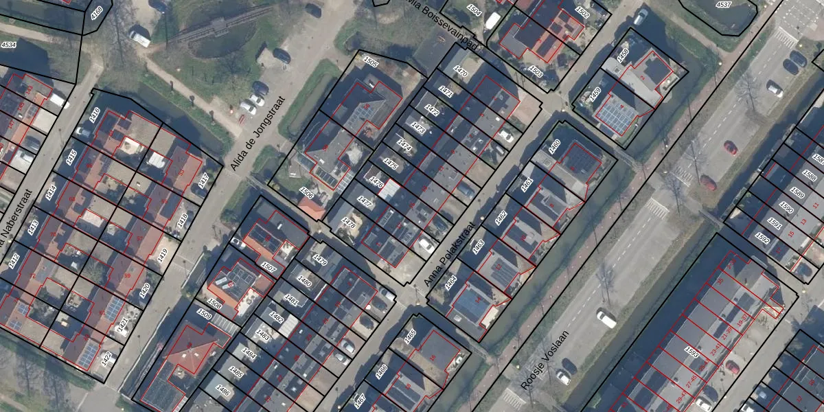 Gebruik de zoekbalk of klik op een perceel voor informatie over de adressen binnen dit perceel.