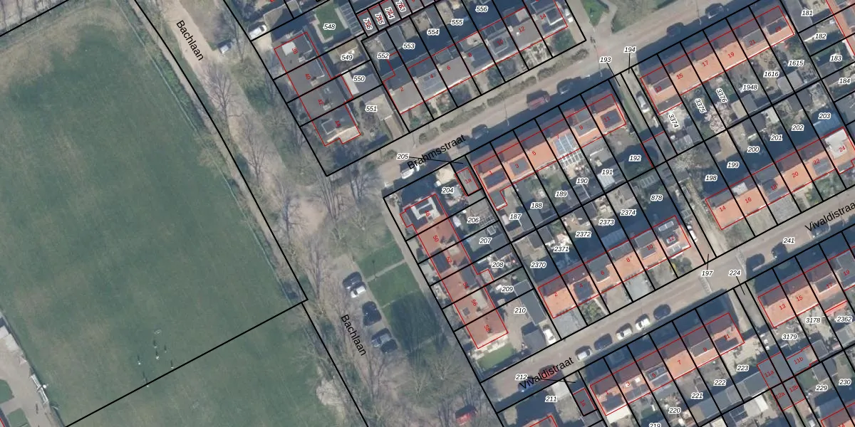Het perceel waarop Bachlaan 48 staat heeft een oppervlakte van 204 m². Dit is een middelgroot perceel. De perceeloppervlakte wordt geregistreerd door het Kadaster. Gedetailleerde informatie over de maten van dit perceel kunt u vinden in het rapport Kadastrale kaart met maatvoering van Bachlaan 48.