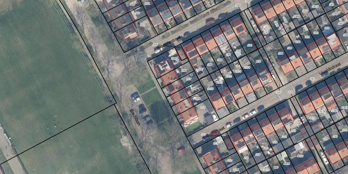 Het perceel waarop Bachlaan 52 staat heeft een oppervlakte van 129 m². Dit is een middelgroot perceel. De perceeloppervlakte wordt geregistreerd door het Kadaster. Gedetailleerde informatie over de maten van dit perceel kunt u vinden in het rapport Kadastrale kaart met maatvoering van Bachlaan 52.