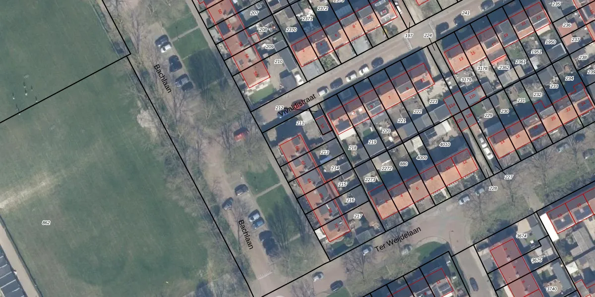 Het perceel waarop Bachlaan 60 staat heeft een oppervlakte van 228 m². Dit is een middelgroot perceel. De perceeloppervlakte wordt geregistreerd door het Kadaster. Gedetailleerde informatie over de maten van dit perceel kunt u vinden in het rapport Kadastrale kaart met maatvoering van Bachlaan 60.