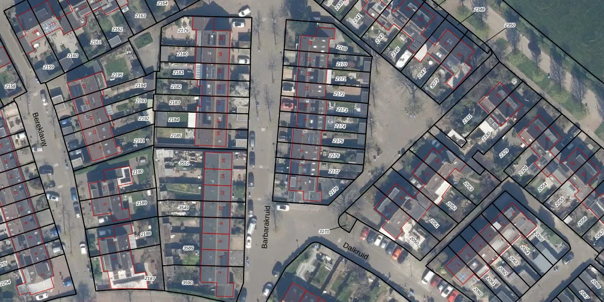 Gebruik de zoekbalk of klik op een perceel voor informatie over de adressen binnen dit perceel.