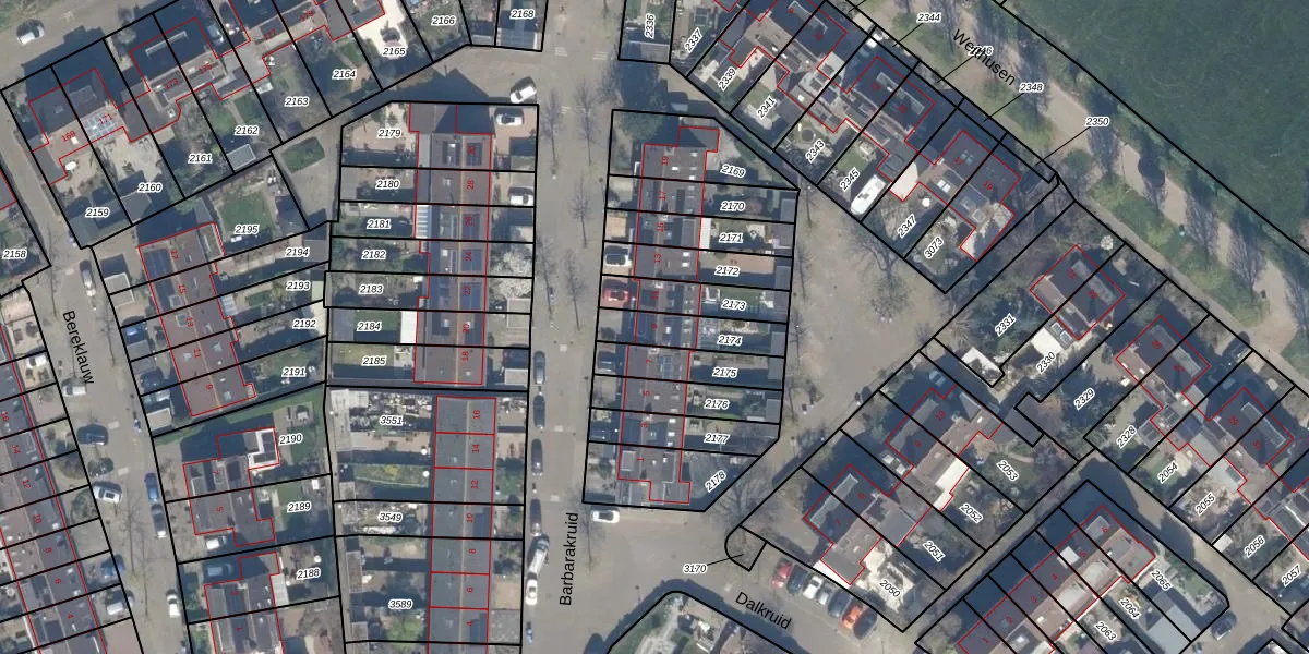 Barbarakruid 9 is gelegen op kadastraal perceel CLB00K2174. Deze kadastrale aanduiding is uniek en wordt gebruikt door het Kadaster om eigendomsrechten en andere zakelijke rechten vast te leggen. Het perceel maakt onderdeel uit van de kadastrale gemeente Culemborg.