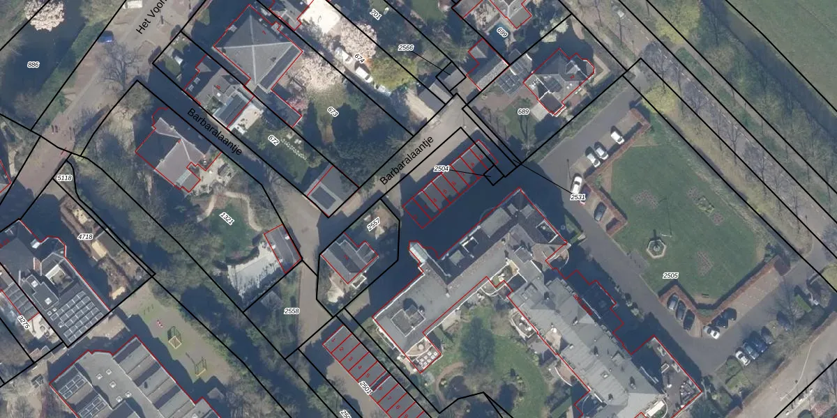 Het perceel waarop Barbaralaantje 2 staat heeft een oppervlakte van 7452 m². Dit is een zeer groot perceel. De perceeloppervlakte wordt geregistreerd door het Kadaster. Gedetailleerde informatie over de maten van dit perceel kunt u vinden in het rapport Kadastrale kaart met maatvoering van Barbaralaantje 2.