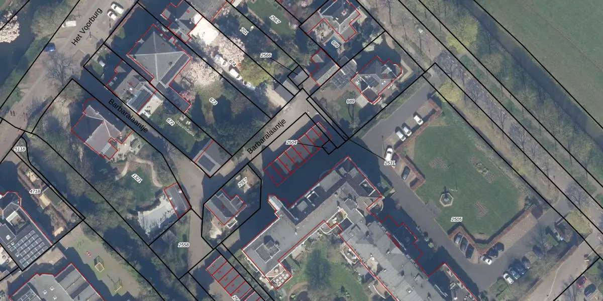 Het perceel waarop Barbaralaantje 6 staat heeft een oppervlakte van 7452 m². Dit is een zeer groot perceel. De perceeloppervlakte wordt geregistreerd door het Kadaster. Gedetailleerde informatie over de maten van dit perceel kunt u vinden in het rapport Kadastrale kaart met maatvoering van Barbaralaantje 6.
