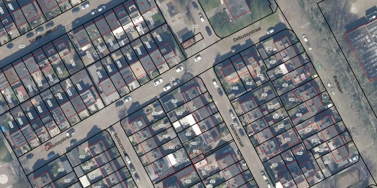 Het perceel waarop Bartokstraat 1 staat heeft een oppervlakte van 227 m². Dit is een middelgroot perceel. De perceeloppervlakte wordt geregistreerd door het Kadaster. Gedetailleerde informatie over de maten van dit perceel kunt u vinden in het rapport Kadastrale kaart met maatvoering van Bartokstraat 1.