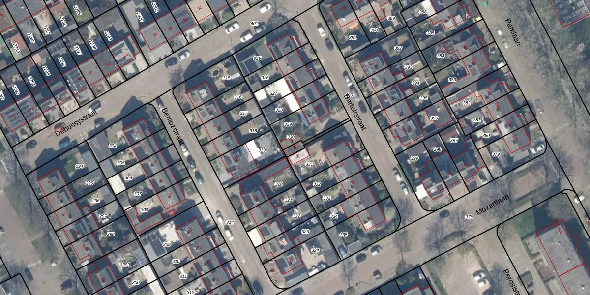 Gebruik de zoekbalk of klik op een perceel voor informatie over de adressen binnen dit perceel.