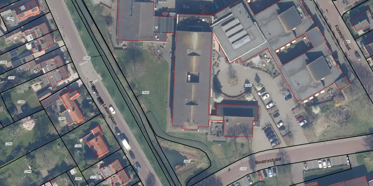 Het perceel waarop Beatrixstraat 20-w-14 staat heeft een oppervlakte van 1,8 ha. Dit is een zeer groot perceel. De perceeloppervlakte wordt geregistreerd door het Kadaster. Gedetailleerde informatie over de maten van dit perceel kunt u vinden in het rapport Kadastrale kaart met maatvoering van Beatrixstraat 20-w-14.