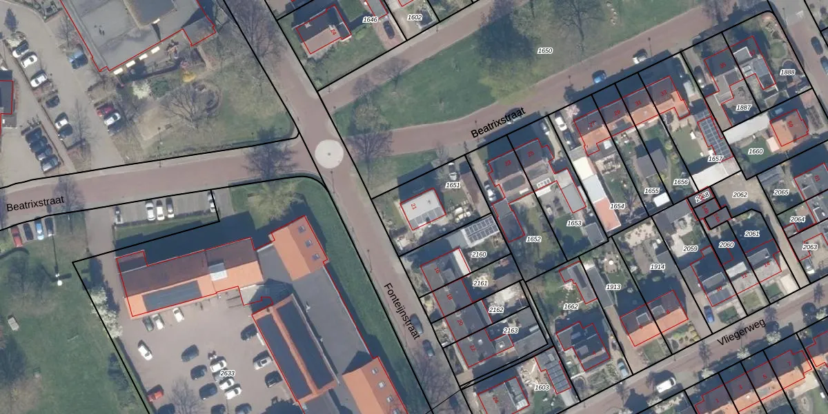 Het perceel waarop Beatrixstraat 21 staat heeft een oppervlakte van 388 m². Dit is een groot perceel. De perceeloppervlakte wordt geregistreerd door het Kadaster. Gedetailleerde informatie over de maten van dit perceel kunt u vinden in het rapport Kadastrale kaart met maatvoering van Beatrixstraat 21.