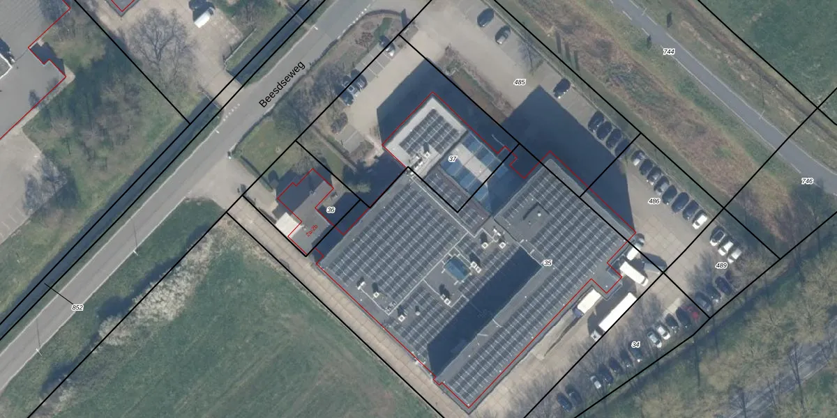 Beesdseweg 2-b is gelegen op kadastraal perceel CLB00M35. Deze kadastrale aanduiding is uniek en wordt gebruikt door het Kadaster om eigendomsrechten en andere zakelijke rechten vast te leggen. Het perceel maakt onderdeel uit van de kadastrale gemeente Culemborg.